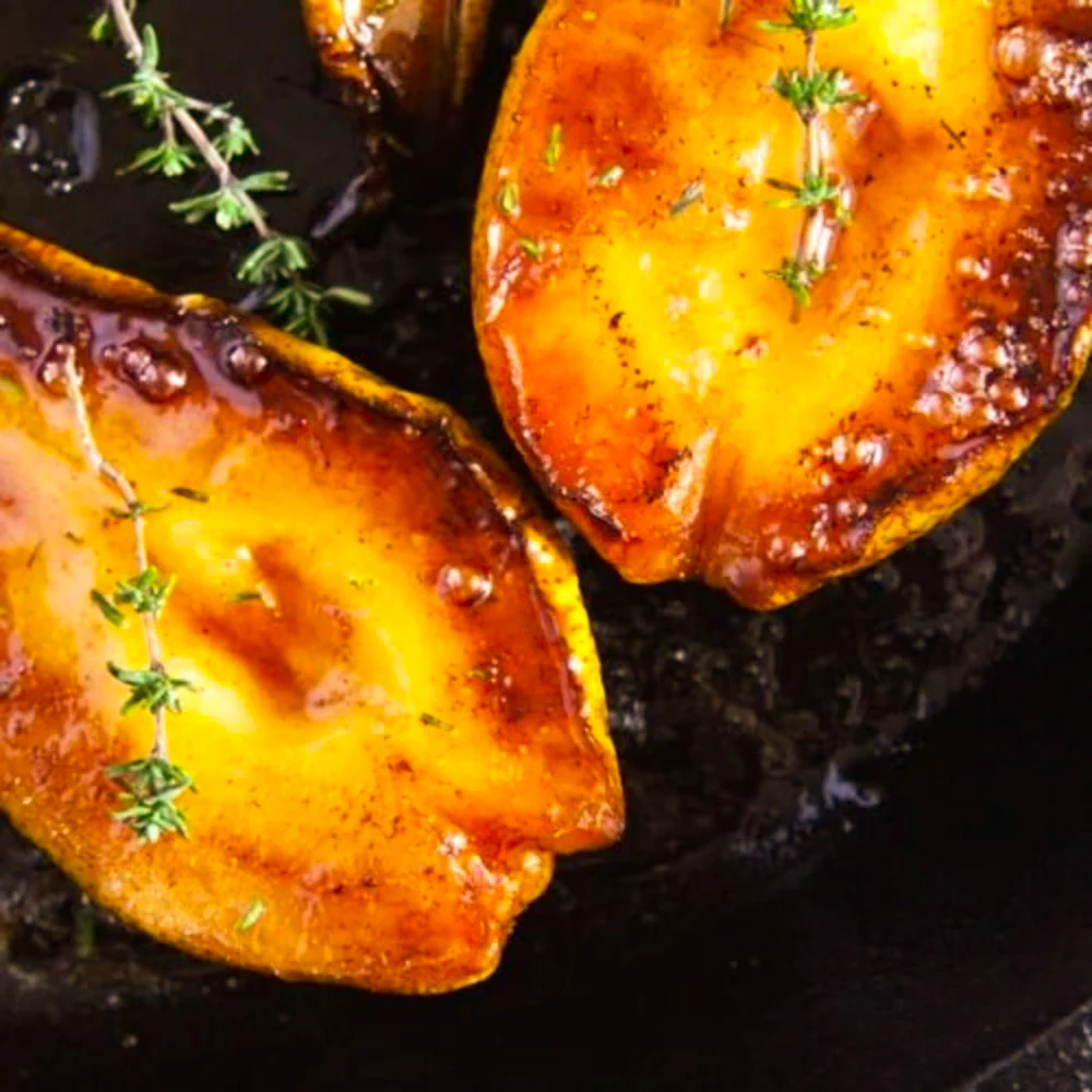 Ingredients 2 large slightly under ripe pears 2 teasp unsalted butter 3 Tablespoons WVOO Cranberry Pear Vinegar 4 teaspoons runny honey (or more to taste) Preparation 1: Halve and core the fruit carefully, but leave the peel on. 2: Melt the butter in the skillet. Place the pears in the pan with the cut side facing [...]