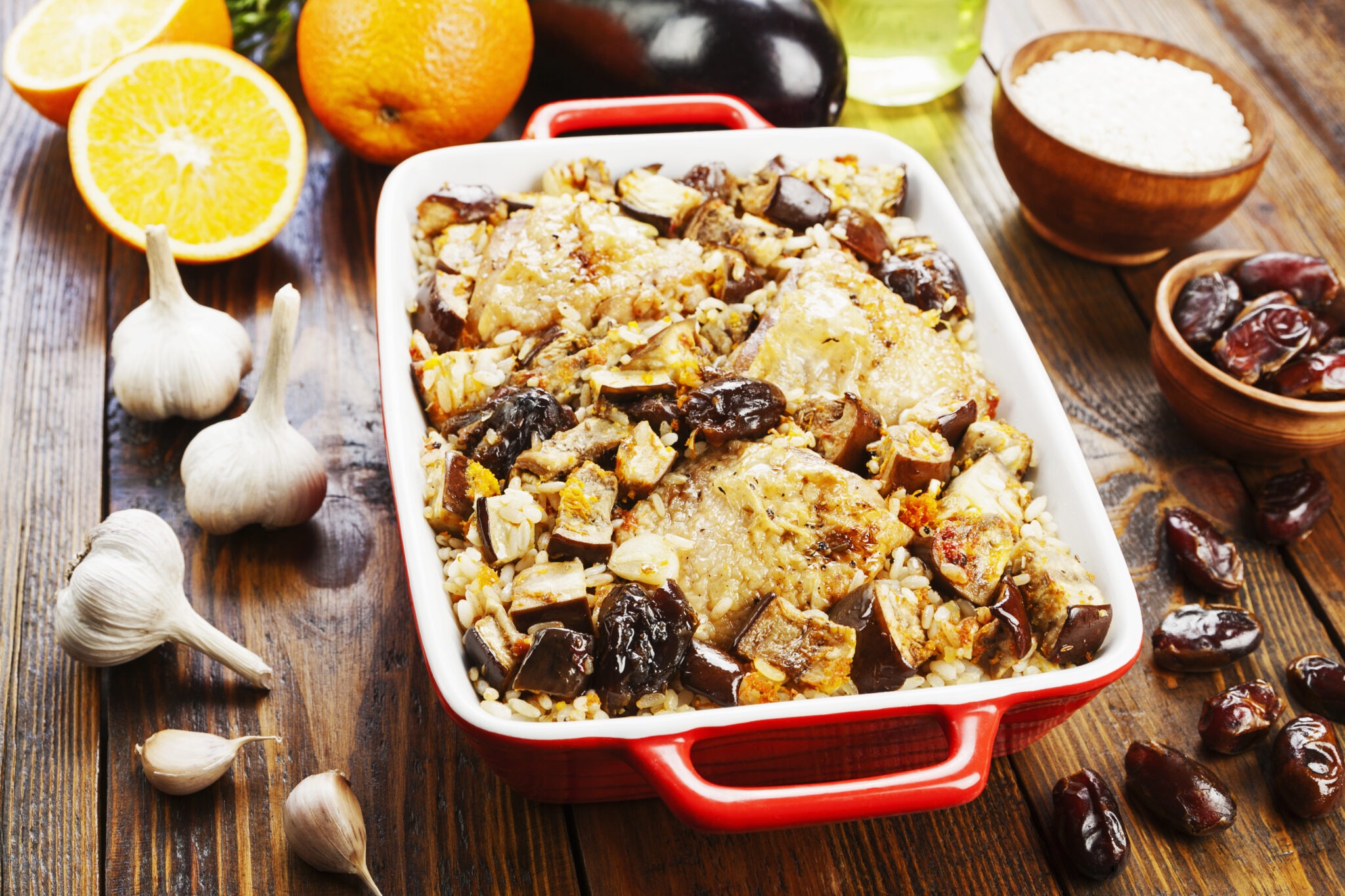 Baked Chicken Topped with Mani Orange Olive Oil, Dates, Apples, and Apricots