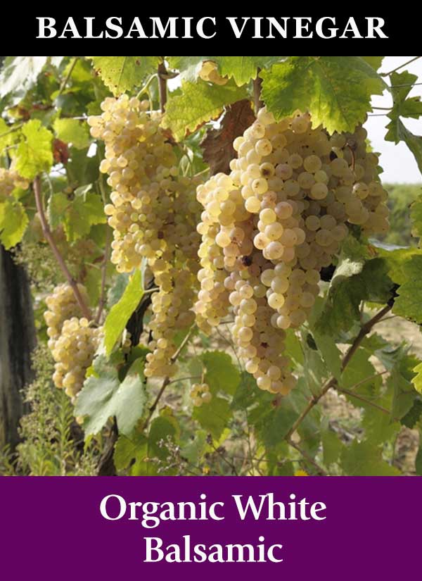 Made with Trebbiano grape must, our organic white balsamic is a crisp, zesty vinegar with a touch of sweetness for every day applications.