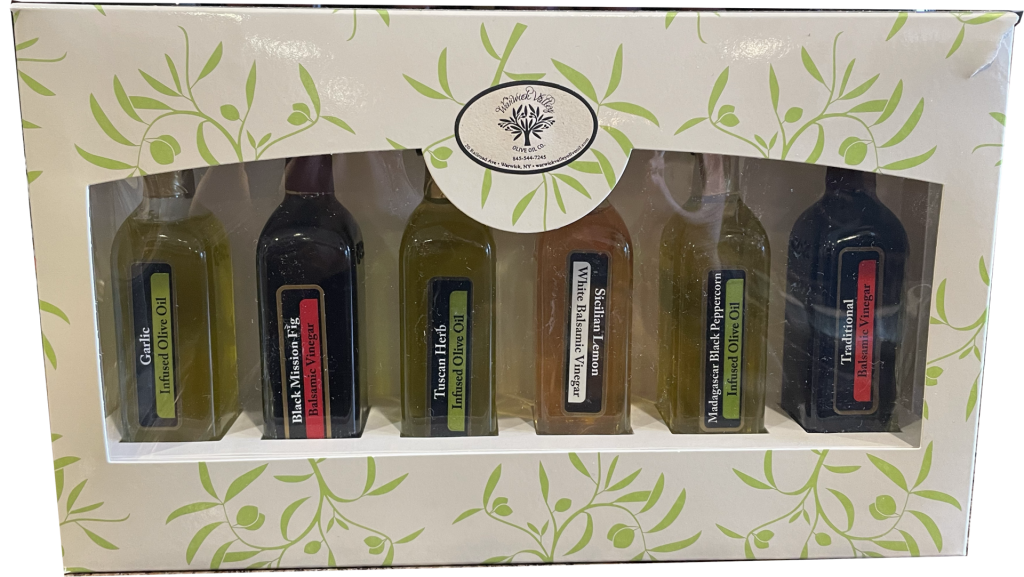 Sampler Packs of 4 or 6 bottles in 60ml size, assorted extra virgin olive oil and balsamic vinegar